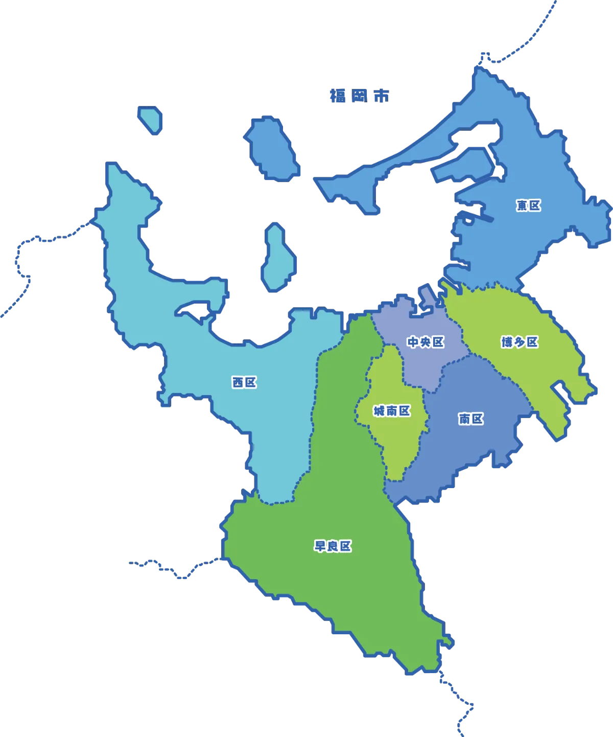 中央区、博多区、東区、南区、早良区、城南区、西区